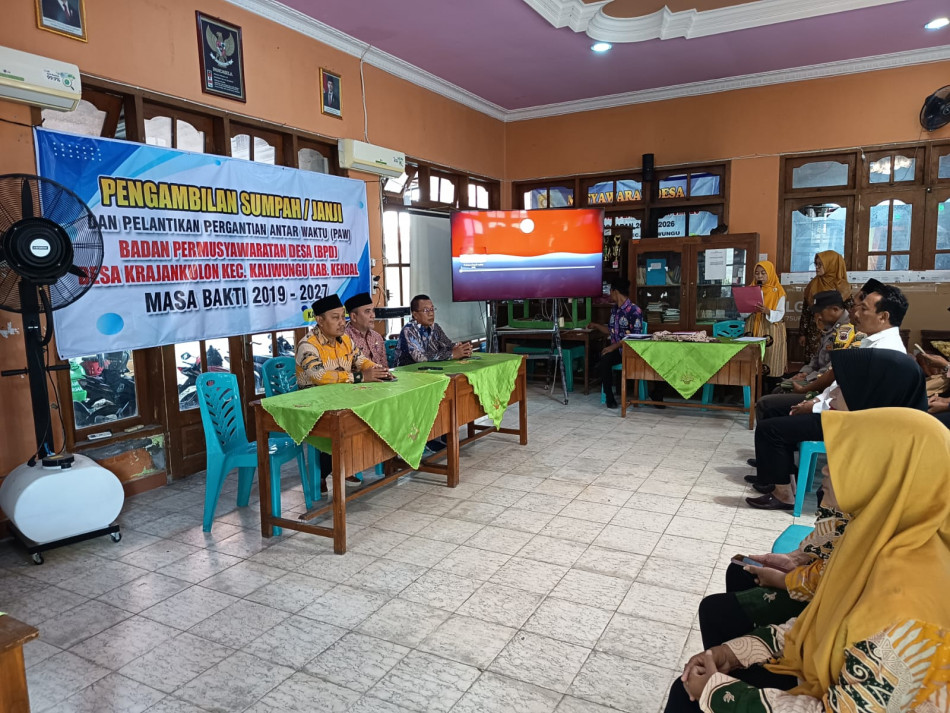 Pemerintah Desa Krajankulon Kecamatan Kaliwungu menggelar acara Pengambilan Sumpah/ Janji & Pelantikan Pergantian Antar Waktu (PAW) Badan Permusyawaratan Desa (BPD) Krajankulon masa bakti Juli 2019 - Juli 2027 atas nama Akhmad Fuad, Kamis 19 Februari 2026. Kegiatan tersebut berlangsung di Aula Balai Desa Krajankulon dengan khidmat dan penuh kebersamaan. Acara pelantikan dihadiri oleh Camat Kaliwungu, Pratikto Joko Wijayanto, S.H beserta jajaran Forkompicam, Kepala Desa Krajankulon beserta Perangkat Desa, BPD beserta anggota, Bhabinkamtibmas, Babinsa, Tokoh Masyarakat, Tokoh Agama, serta tamu undangan lainnya.